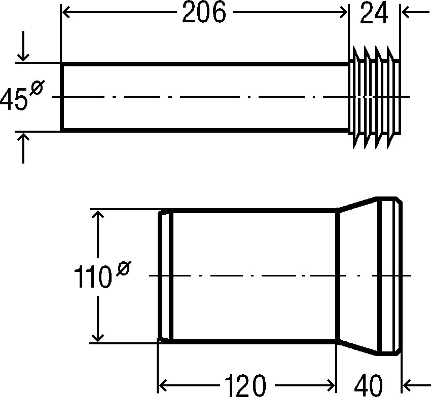 Spülrohr mit Spülrohrverbinder 45 x 230 mm, WC-Anschlussrohr mit Lippendichtung, Montageset (Abdeckzubehör weiß)