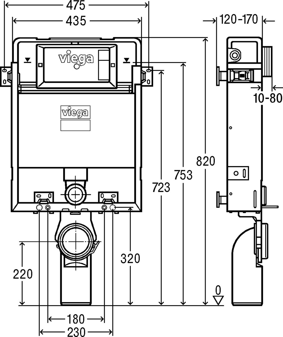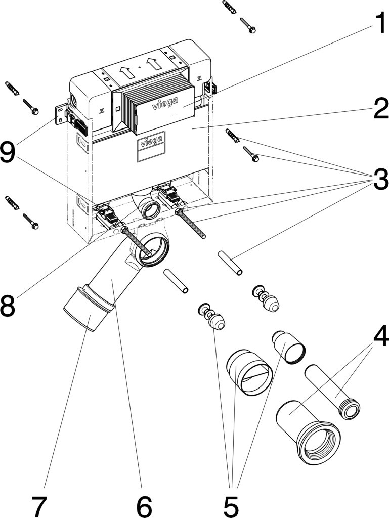 Viega WC-Block Prevista Pure 8516 820 mm, Stahl, für Ein-/Ummauerung
