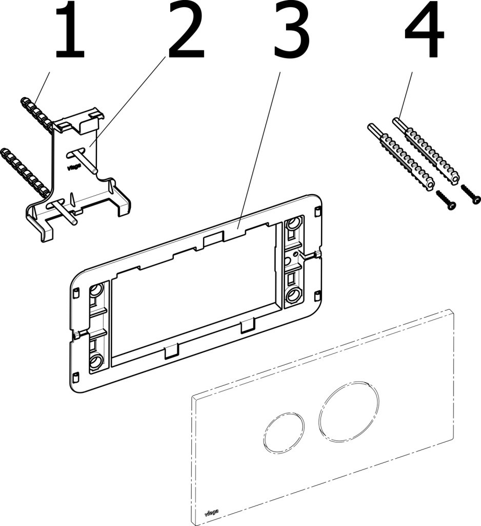 für UP-Spülkasten 2H, UP-Spülkasten 2L, UP-Spülkasten 2C, UP-Spülkasten Standard 2S, (Modell 8180.26), manuelle Auslösung von vorn oder oben, 2-Mengen-Spültechnik, Befestigungsrahmen, Befestigungsmaterial