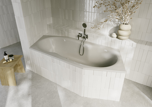 6-Eck-Badewanne BetteMetric 6840 206x90x45cm, Fußende rechts, Überlauf vorne, Glasur, manhattan
