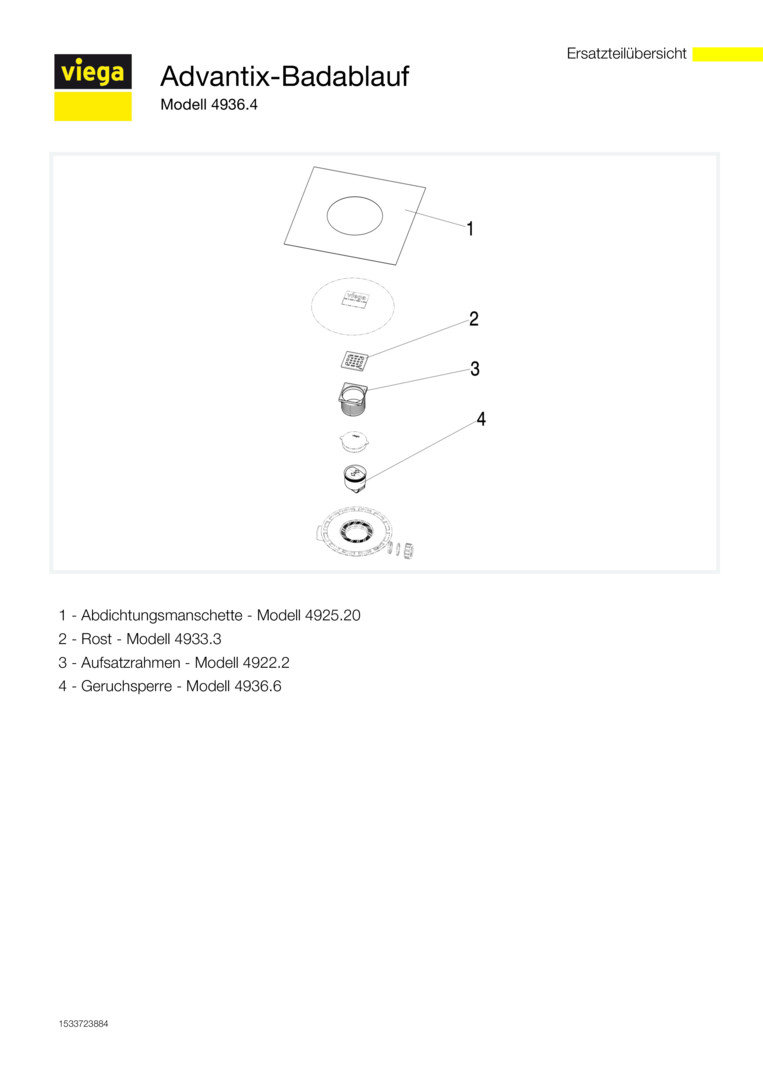 Viega Badablauf Advantix 4936.4 Aufsatz mit Rahmen aus Kunststoff, DN 50, geruchsicher