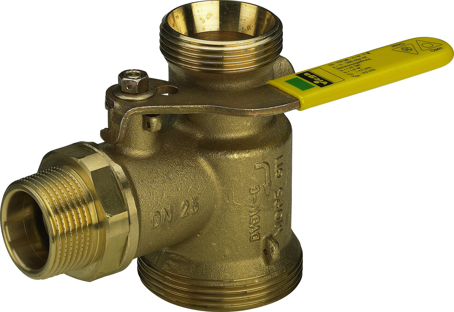 Viega Gaszählerkugelhahn G2111.3S R 1, 2,5 cbm, Messing, Eck, mit Gasströmungswächter K VI618513