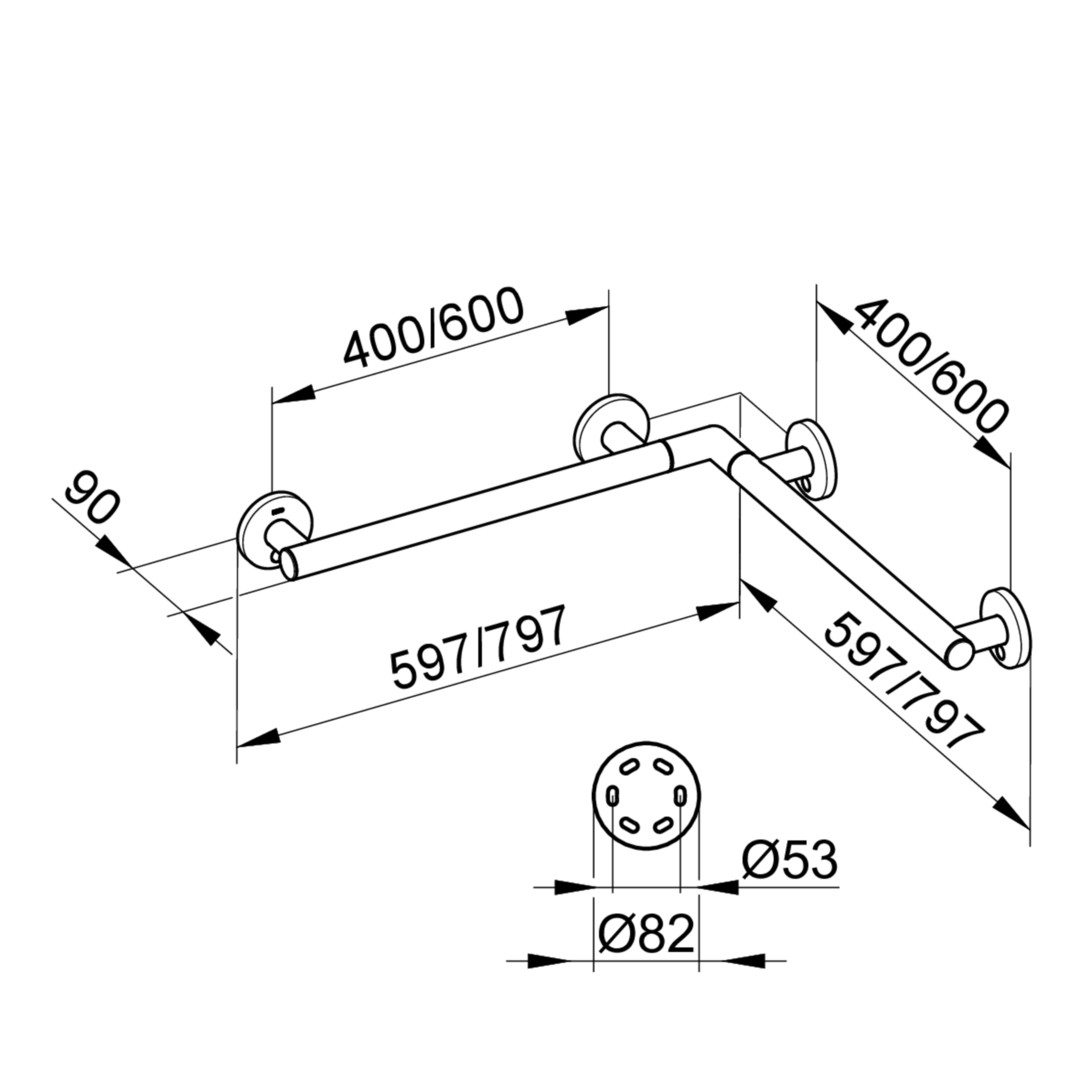 KEUCO Dusch- und Wannenhandlauf Plan Care 597 x 797 mm, verchromt KE34911014600