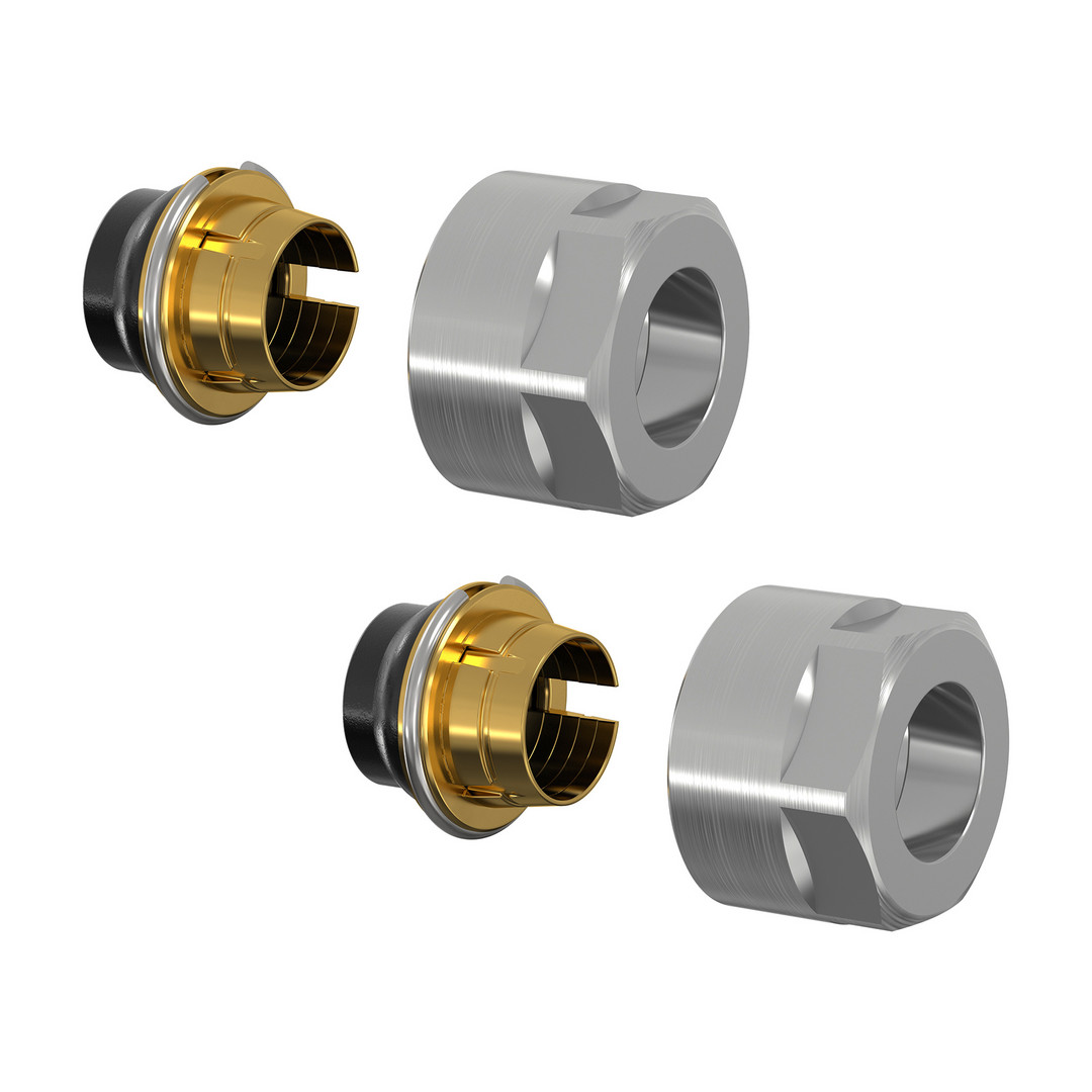 2x Klemmverschraubungen für den Einsatz hinter Simplex Sockelleisten in Warmwasser-Heizungsanlagen, für Kupferrohre (blank, vernickelt, verchromt), C-Stahl- und Edelstahlrohre, passend für G 3/4 M Eurokonus, elastisch dichtend, verlängerter Klemmring für hohe Auszugskräfte, keine Stützhülsen erforderlich, Mutter SW 27, mit Festanschlag, 2-Stufen-Funktion: Dichten-Klemmen, Dichtmaterialien aus EPDM, max. Betriebstemperatur: 110 °C Dauertemperatur /130 °C kurzzeitig, max. Betriebsdruck 10 bar