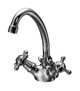 KAJA Waschtisch-Zwei-Griff-Armatur ROMANZE Rohrauslauf, mit Zugknopf-Ablaufgarnitur, chrom