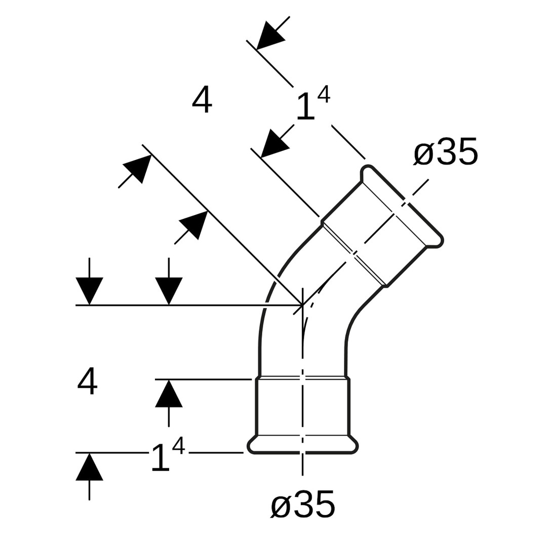 Geberit Bogen Mapress 45°, Kupfer, Ø 35 mm