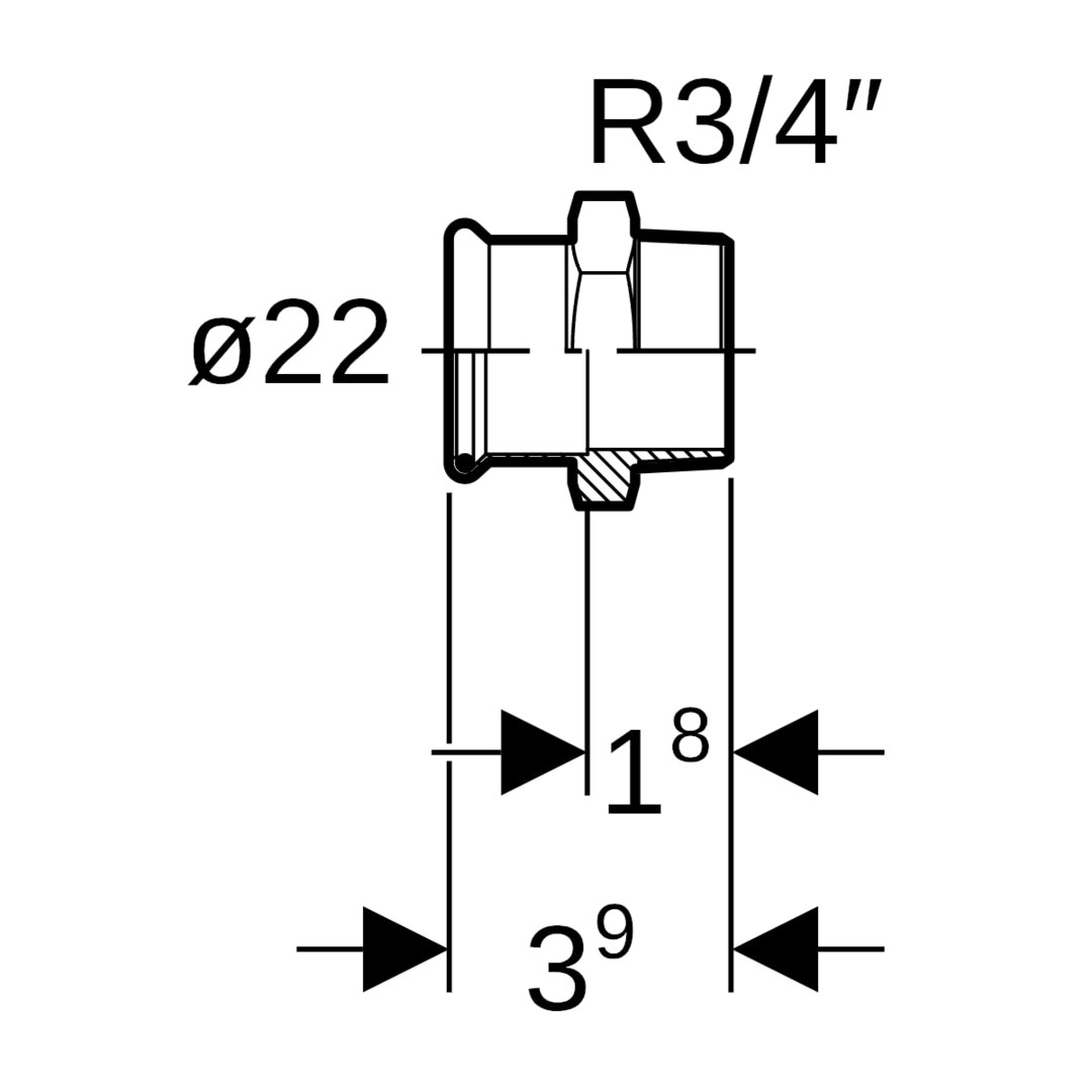 Geberit Übergang Mapress Ø 22 mm x R 3/4, Kupfer, mit Außengewinde, Rotguss GE61707