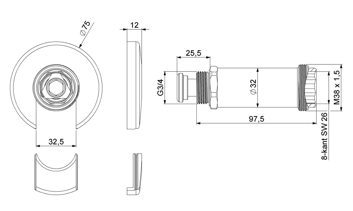 Deltamess Mantelrohr 3/4", 26,5 mm, mit 2-tlg. Wandabdeckrosette, verchromt DM10025