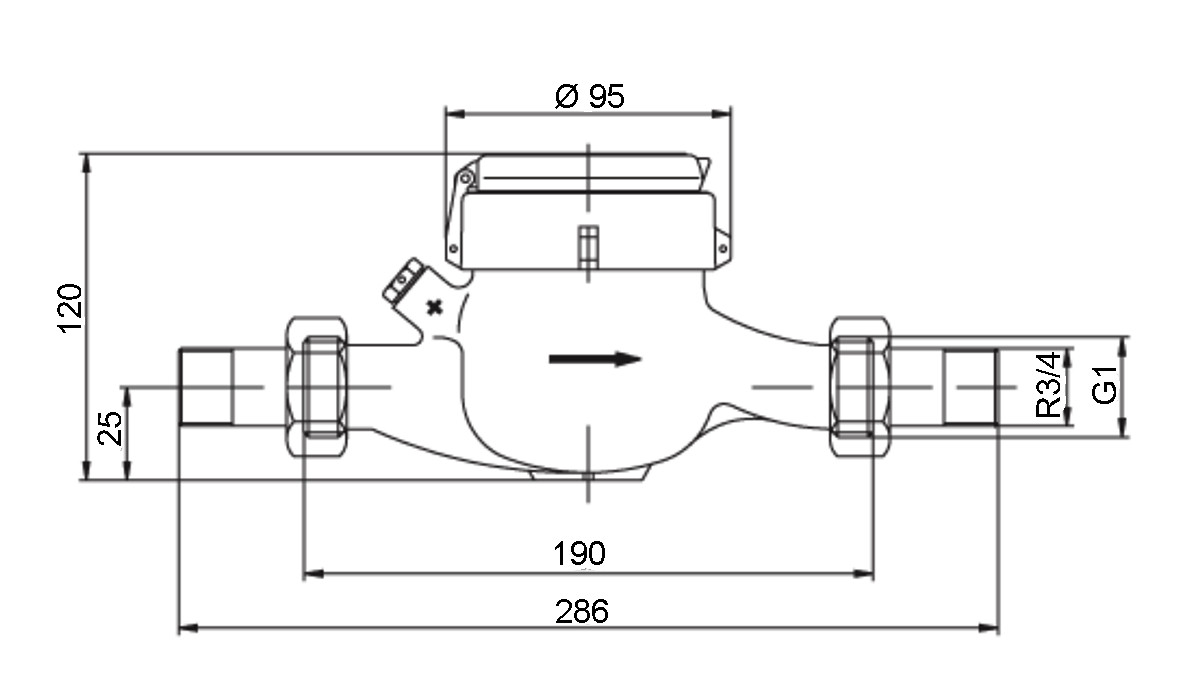 Deltamess Mehrstrahl-Trockenläufer MTW Horizontal, DN 20, Q3 4,0 cbm/h, warm, Standard DM10625