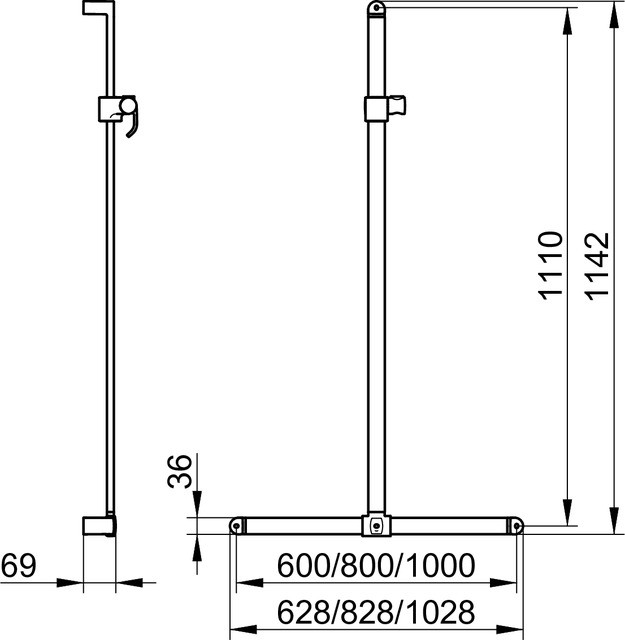 KEUCO Duschhandlauf Elegance Breite 628, Höhe 1142mm, verchromt, Brausestange frei positionierbar KE31614010611