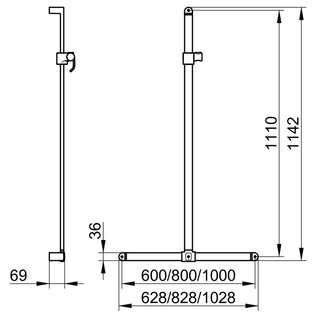 KEUCO Duschhandlauf Elegance Breite 828, Höhe 1142mm, verchromt, Brausestange frei positionierbar KE31614010811
