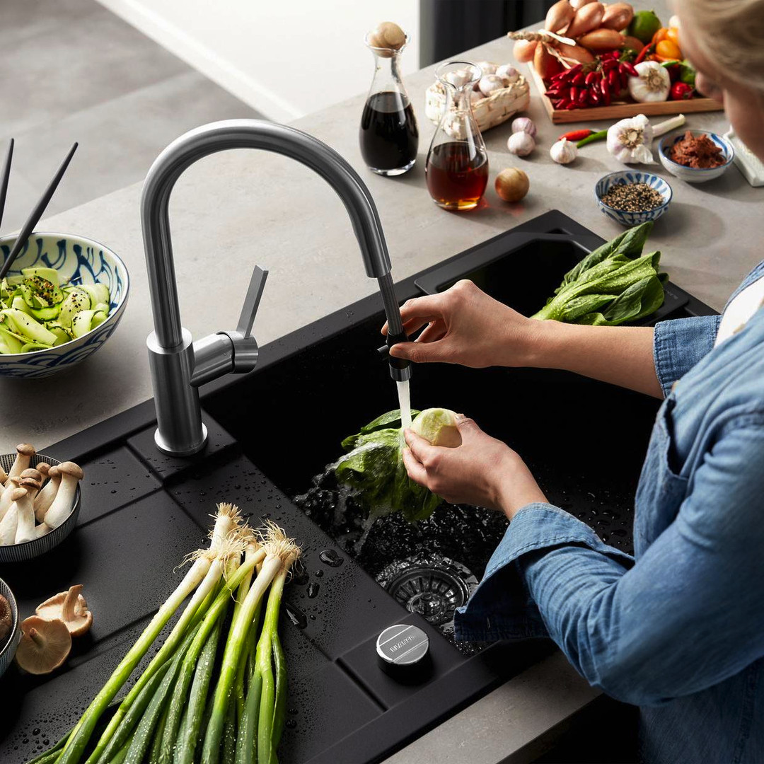 Blanco Spüle METRA XL 6 S SILGRANIT 100 x 50 cm, vulkangrau, reversibel, mit Ablauffernbedienung BL527306