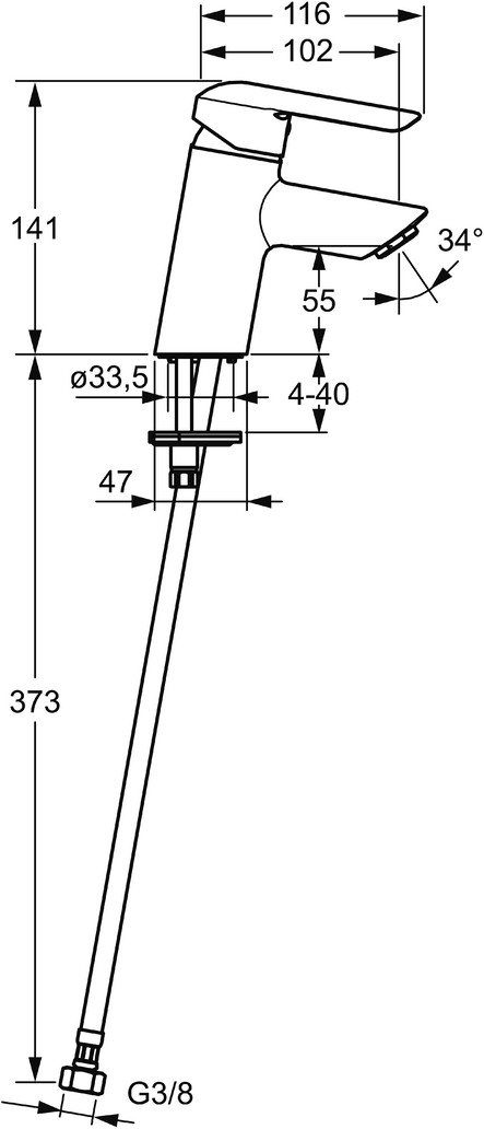 HANSA Waschtisch-Einhebelmischer HANSAVANTIS Style ohne Ablaufgarnitur, Ausladung 102mm, Hebel, chrom