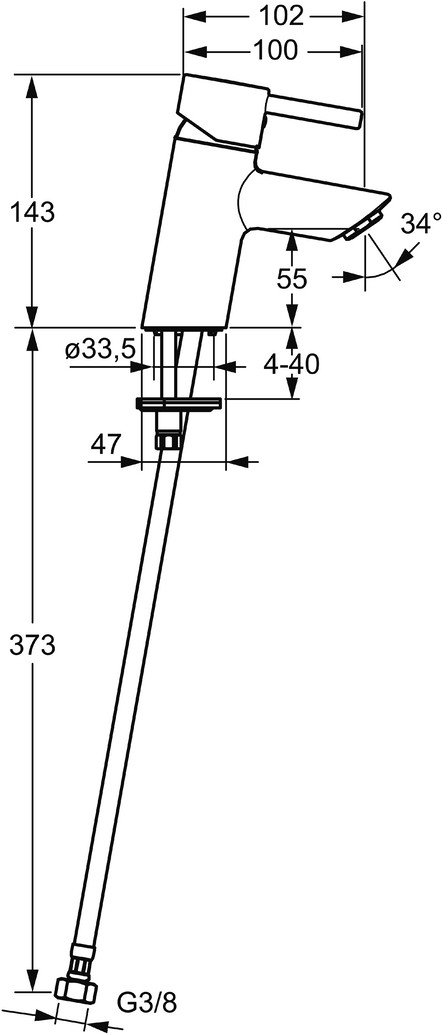HANSA Waschtisch-Einhebelmischer HANSAVANTIS Style ohne Ablaufgarnitur, Ausladung 102mm, Pinhebel, chrom