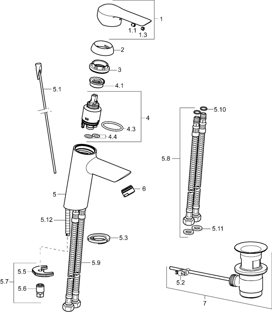 DN 15, Durchflussmenge 6 l/min, gemessen bei 3 bar Fließdruck, Heißwasserversorgung max. 80 °C, Armaturenkörper aus entzinkungsbeständigem Messing (DZR), Rapid-Montagesystem, Hebel mit W+K-Kennzeichnung, Temperaturbegrenzer, Heißwassersperre einstellbar, Anschluss über flexible Druckschläuche G 3/8, Ø 3.5 classic Steuerpatrone mit keramischen Dichtscheiben zur Wassermengen- und Temperatureinstellung, ohne Zugstangenbohrung, feststehender Auslauf, Strahlregler PCA konstante Durchflussleistung unabhängig vom Fließdruck