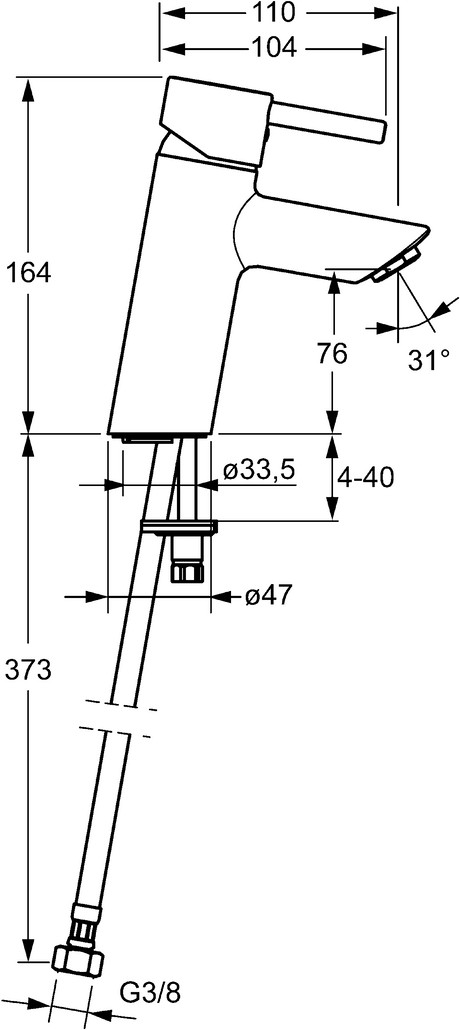 HANSA Waschtisch-Einhebelmischer HANSAVANTIS Style XL ohne Ablaufgarnitur, Ausladung 110mm, Pinhebel, chrom HA52372277