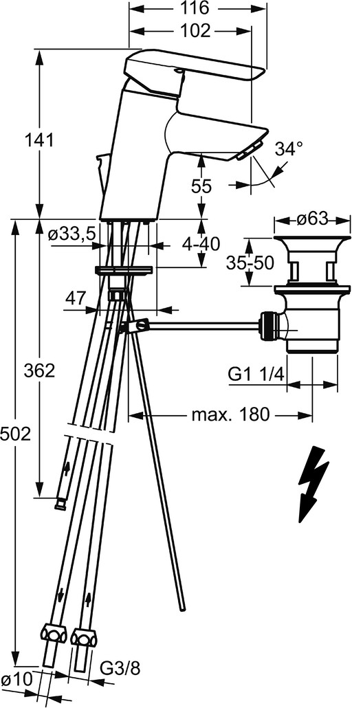 DN 15, Niederdruck, für offene Heißwasserbereiter, Heißwasserversorgung max. 80 °C, Armaturenkörper aus entzinkungsbeständigem Messing (DZR), Rapid-Montagesystem, Hebel mit W+K-Kennzeichnung, Temperaturbegrenzer, Heißwassersperre einstellbar, Ablaufgarnitur mit Zugstange, Anschluss über Kupferrohre (Ø 10 mm), Ø 3.5 classic Steuerpatrone mit keramischen Dichtscheiben zur Wassermengen- und Temperatureinstellung, feststehender Auslauf, Cascade Strahlregler kristallklarer Laminarstrahl