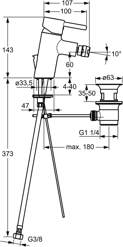 HANSA Bidet-Einhebelmischer HANSAVANTIS Style Auslauf 107mm, Pinhebel, chrom