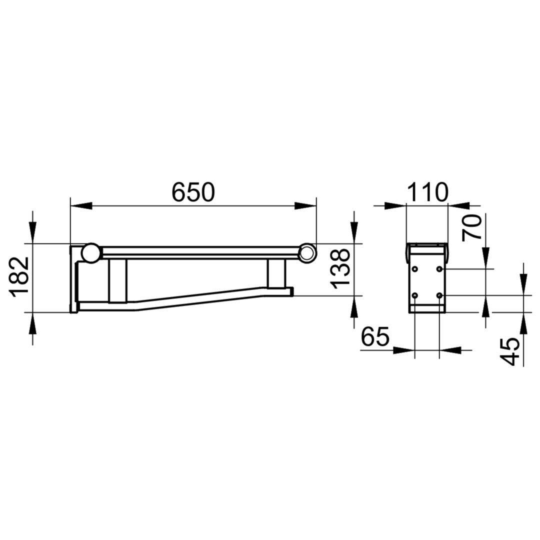 Belastbarkeit 115 kg, Bremse sichert vor unbeabsichtigter Absenkung, Auflagefläche Kunststoff, verdeckte Befestigung, zum Schrauben, Befestigungs-Sets (2x je nach Ankergrund/Mauerwerk) sind separat zu bestellen