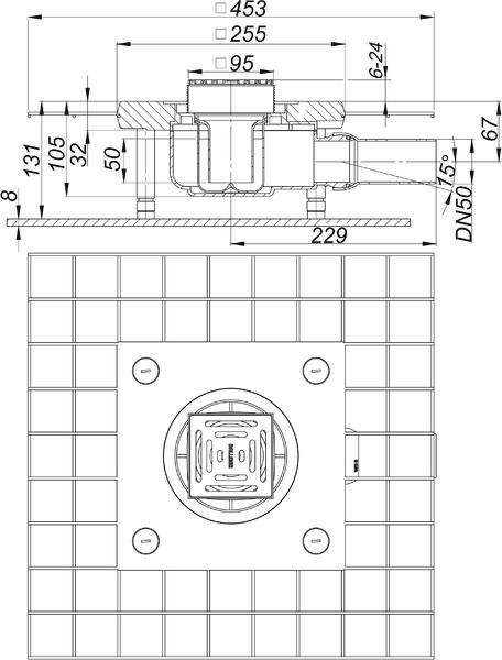 Dallmer Bodenablauf CeraDrain 48 K 12, 120 x 120 mm, DN 50, seitlich, Schallschutz DA513953