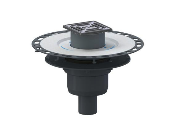 nach DiN EN 1253, Komplettablauf bestehend aus Bodenablaufgehäuse 40 S, TistoDrain Aufstockelement S 10 und einem stufenlos bis zu 40 mm höhen- und bis zu +/-5,5 mm seitenverstellbaren Aufsatz