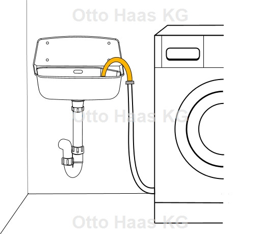 zum Ablaufen von Wasser ohne Druck, für Waschmaschinen-Anschluss 3/4", außen gerieft, geeignet zum Einhängen ins Ausgussbecken, Temperaturbereich bis 90 °C