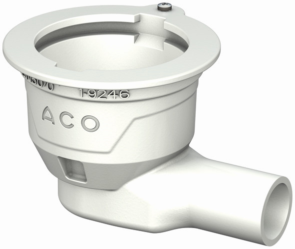 ACO Bodenablauf Passavant DN 50, Halterand, waagerecht, Gusseisen, weiß epoxiert