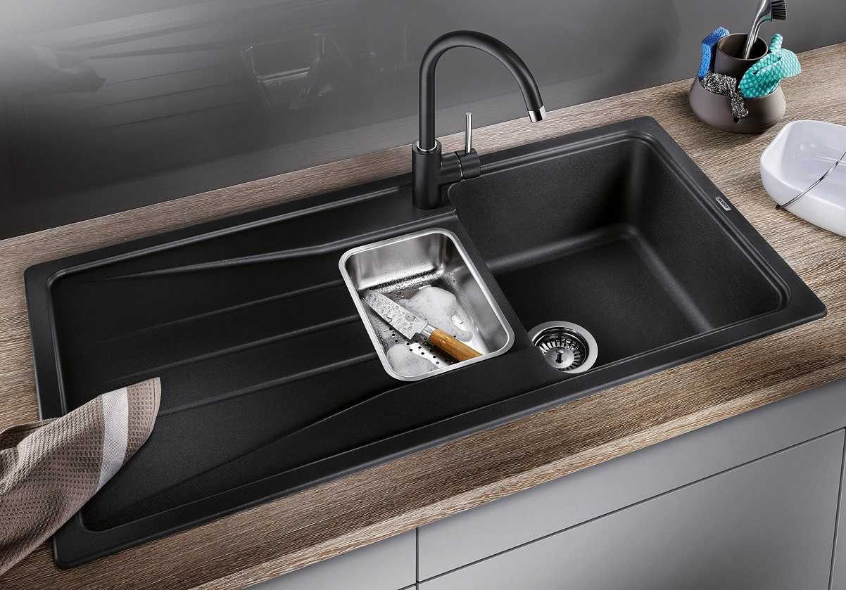 Blanco Spüle SONA 6 S SILGRANIT 100 x 50 cm, PuraDur weiß, reversibel, mit Schale, ohne Ablauffernbedienung