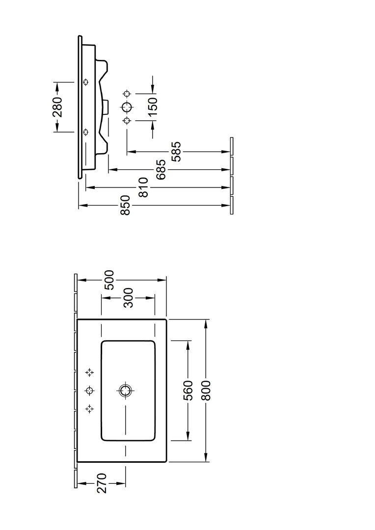 V & B Levita Möbel-Waschtisch 80 x 50,5 cm, weiß, ohne Hahnloch, mit Überlauf VBE012042001