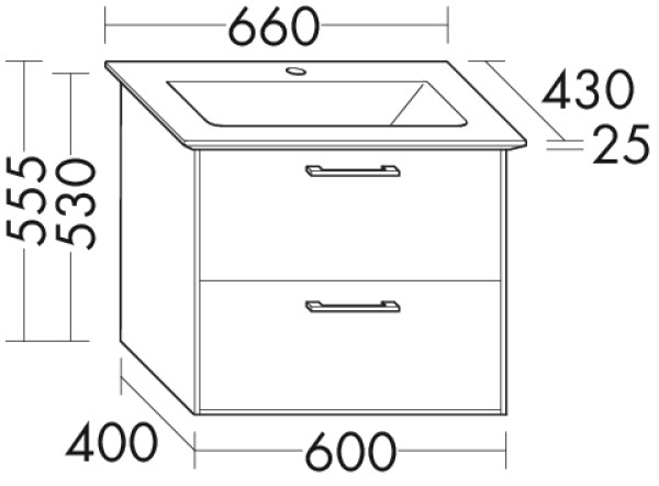 Mineralguss-Waschtisch: Muldentiefe: 120 mm, Beckenmaß 490 x 285 mm, Waschtischunterschrank: 1 Schublade oben mit Siphonausschnitt, 1 Auszug unten mit Raumsparsiphon