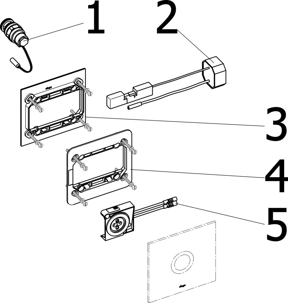 für Urinal-Spülsystem, Metall/Glas, berührungslos, von vorn, mit Abdeckplatte, Steuerungselektronik, Kartuschenventil elektronisch, Netzteil, Befestigungsrahmen, Befestigungsmaterial, Netzspannung 230 V/50 Hz, optional bestellbar Batteriefach Modell 8351.11