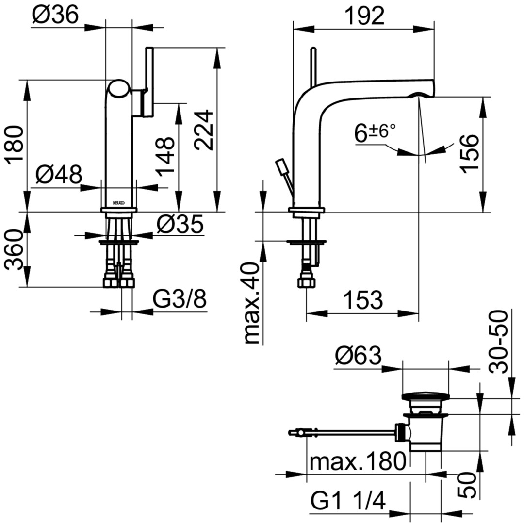 KEUCO Waschtisch-Einhebelmischer 150 Edition 400 Ausladung 153mm, mit Ablaufgarnitur, verchromt KE51502010000