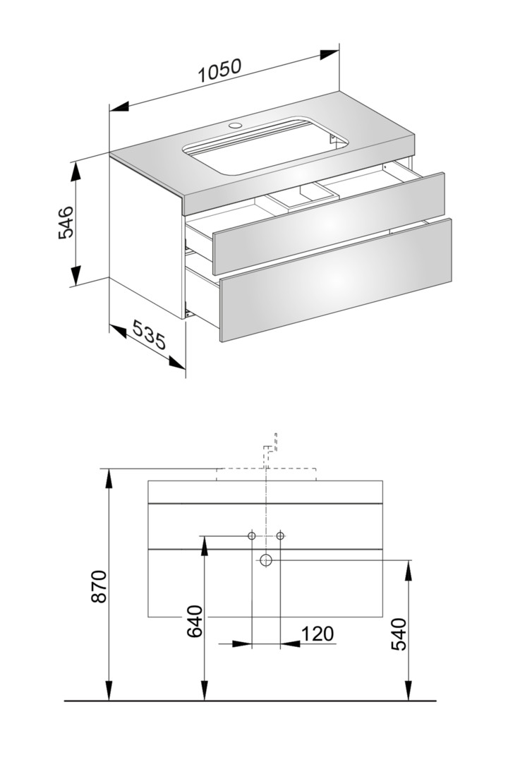 KEUCO Waschtisch-Unterschrank Edition 400 31572 105x54,6x53,5cm, 2 Auszüge, mit Hahnloch, Anthrazit/Anthrazit KE31572390100