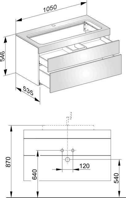 KEUCO Waschtisch-Unterschrank Edition 400 31852 105x54,6x53,5cm, 2 Auszüge, mit Hahnloch, Anthrazit/Anthrazit KE31582390100