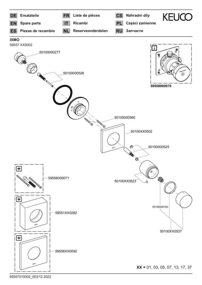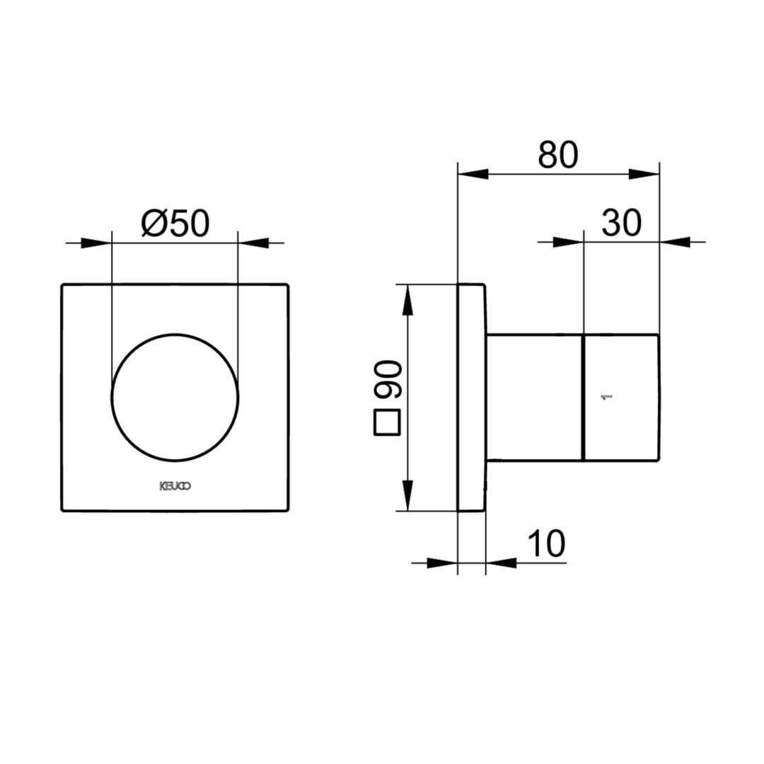 KEUCO Fertigmontageset IXMO UP-2-Wege Ab-/Umstellventil, Griff Pure, eckig, verchromt KE59557010002