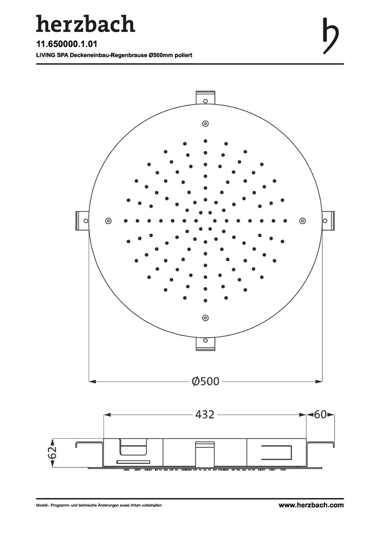 Herzbach Regenbrause Living Spa Ø 500 mm, Deckeneinbau, 1-strahlig, Edelstahl poliert HF11650000101