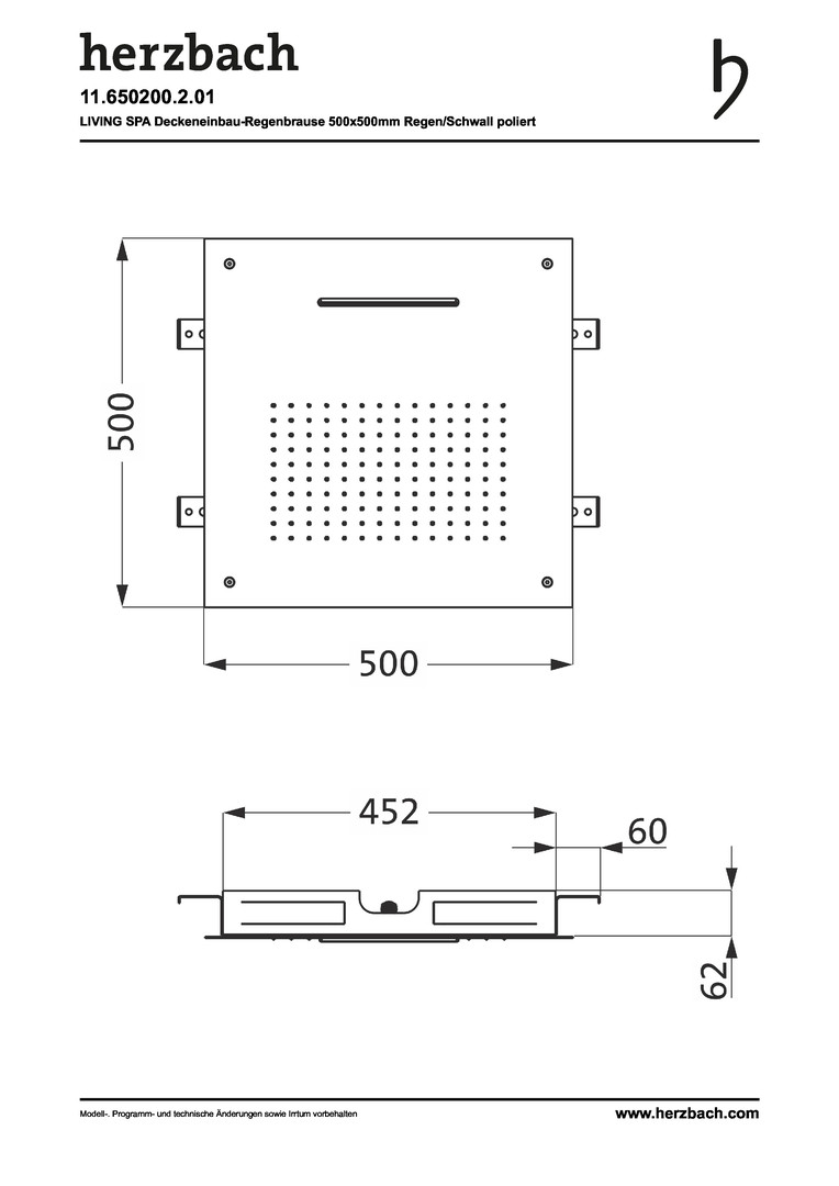 Herzbach Regenbrause Living Spa Multifunktion 2 500x500mm, Deckeneinbau, 2-strahlig, Edelstahl poliert