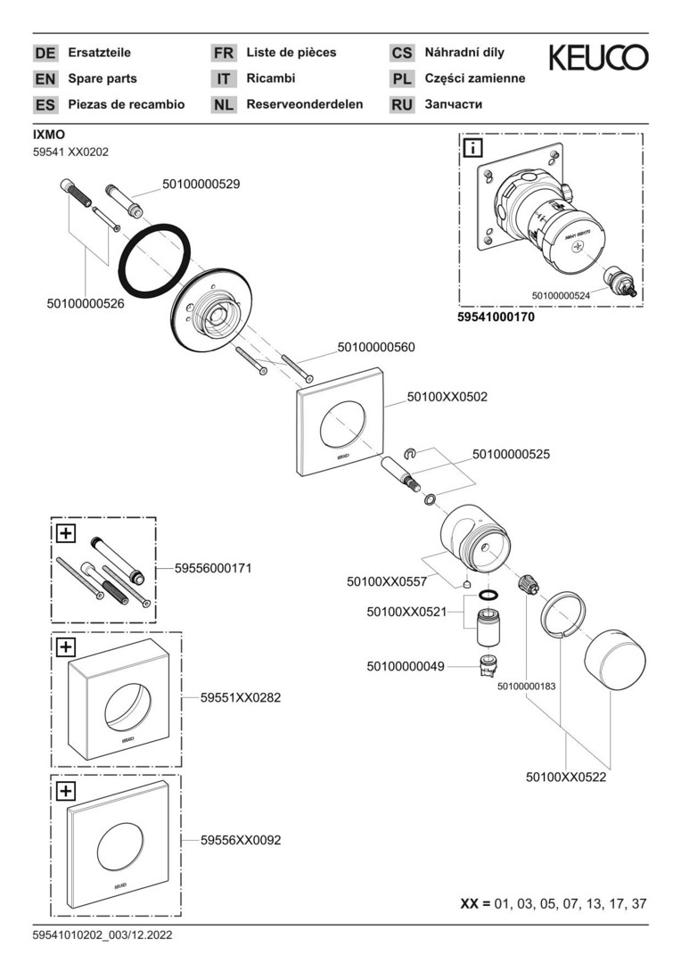 KEUCO Fertigmontageset IXMO Pure verchromt, UP-Absperrventil, eckig, Schlauchanschluss/Brausehalter
