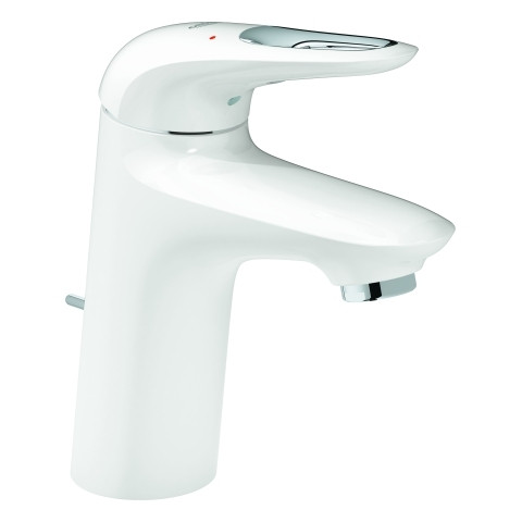 GROHE Waschtisch-Einhebelmischer Eurostyle 1/2", S-Size, mit Zugstangen-Ablaufgarnitur, offener Metall-Hebelgriff, moon White