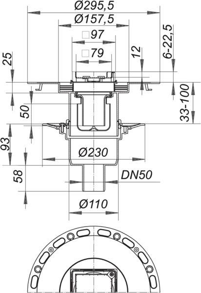 Dallmer Bodenablauf TristoStone VN 10, 100 x 100 mm, DN 50, senkrecht