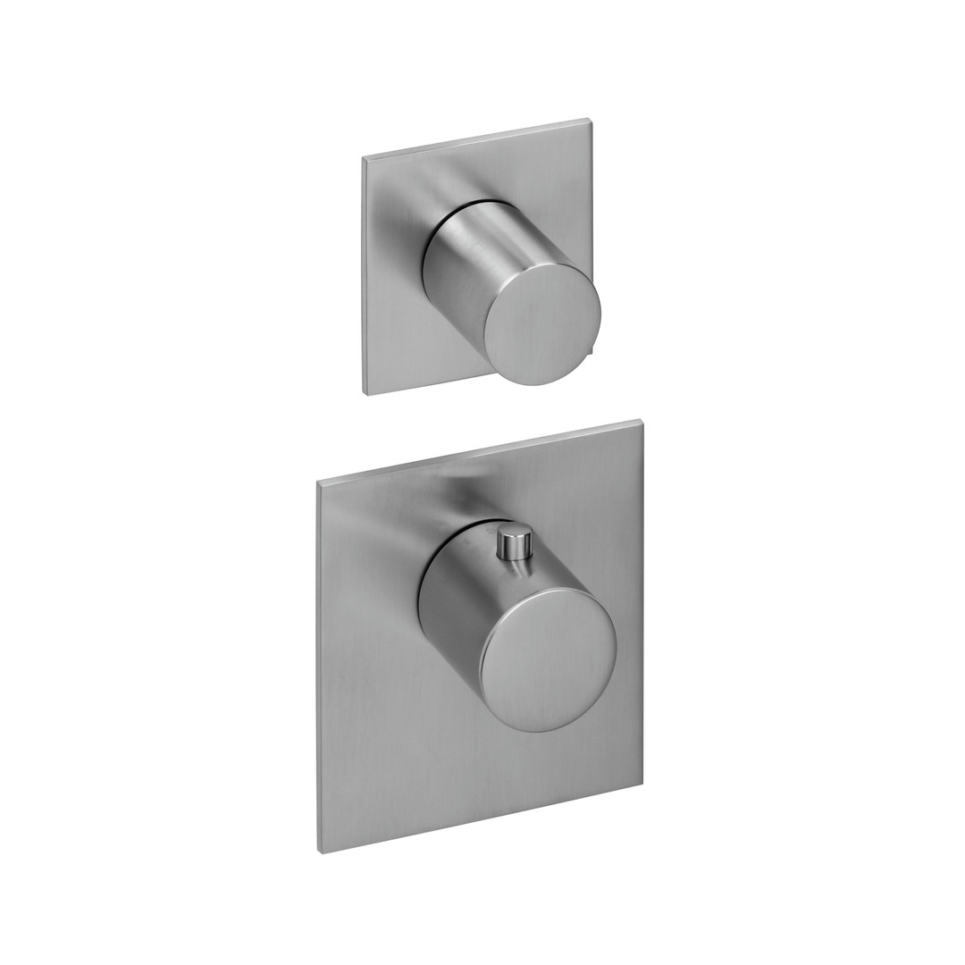 Herzbach Fertigmontageset Logic XL 1 /1+ Thermostat-Modul, 2 Blenden eckig, Griffe rund, Edelstahl gebürstet HF11521015109