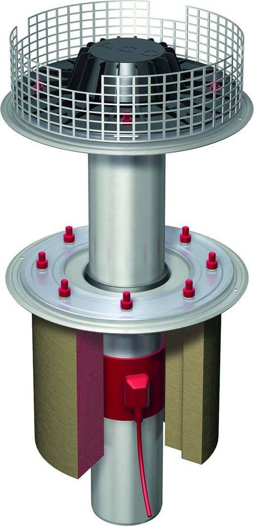 ACO Flachdachablauf Jet Steinwolle beheizt, DN 100, Edelstahl-Kiesfangkorb, 230 x 360 mm, 90Grad