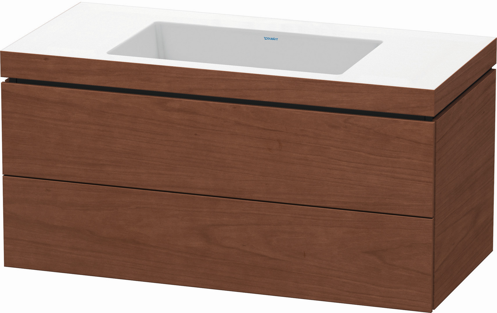 Duravit Waschtisch-Unterschrank c-bonded L-Cube 100 x 48 cm, ohne Hahnloch, amerikanischer nussbaum, 2 Schubkästen, wandhängend