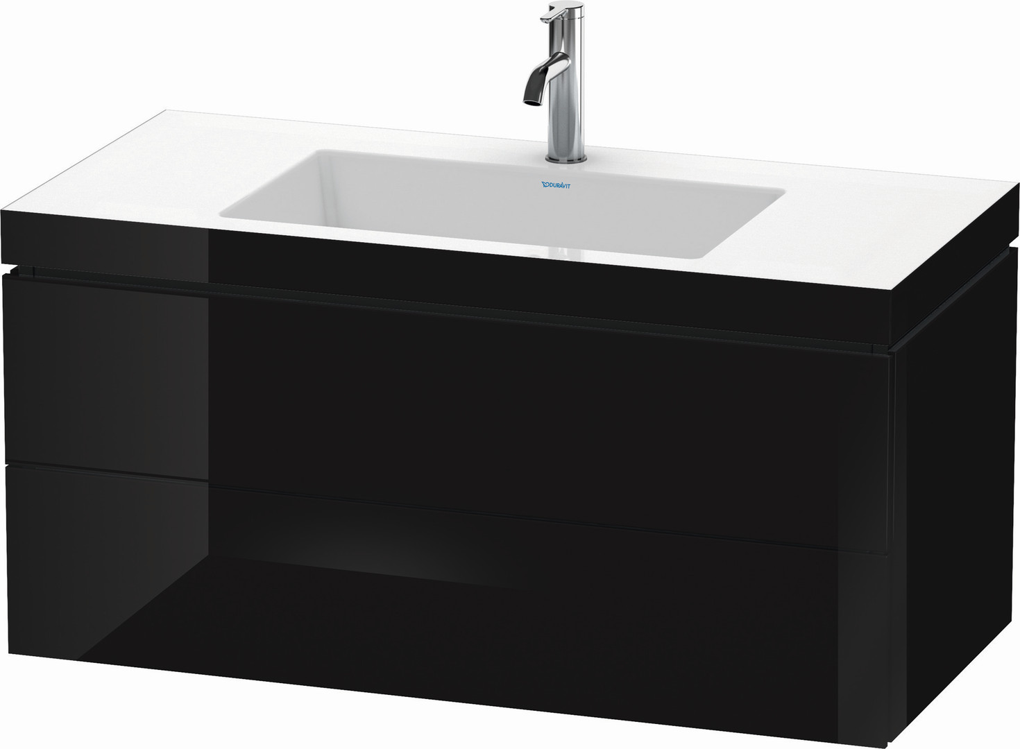 Duravit Waschtisch-Unterschrank c-bonded L-Cube 100 x 48 cm, 1 Hahnloch, schwarz hochglanz, 2 Schubkästen, wandhängend