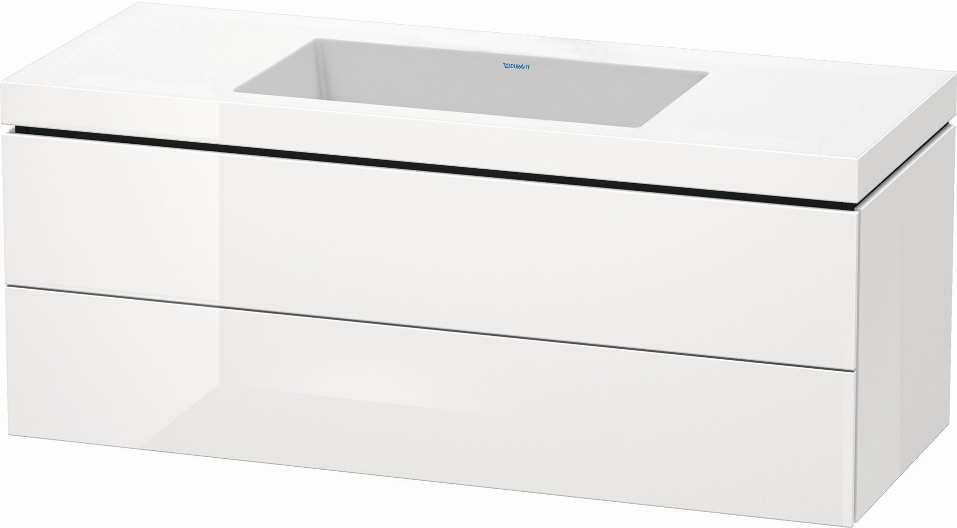 Duravit Waschtisch-Unterschrank c-bonded L-Cube 120 x 48 cm, ohne Hahnloch, weiß hochglanz, 2 Schubkästen, wandhängend