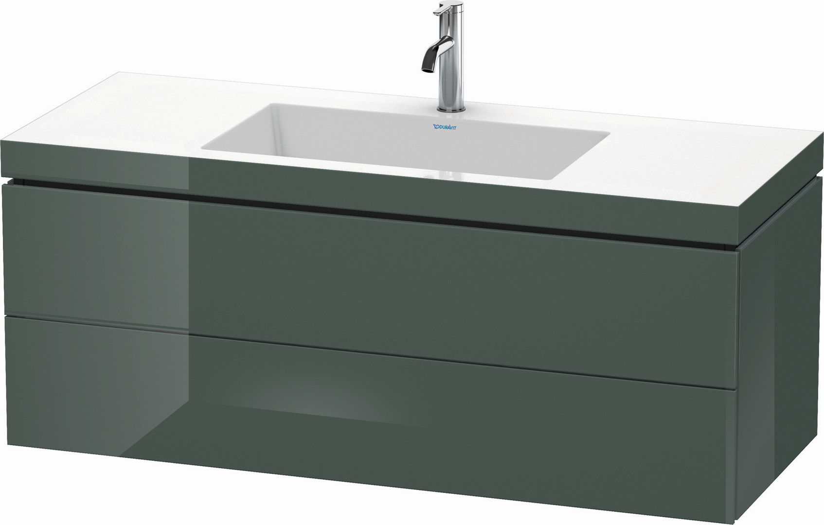 Duravit Waschtisch-Unterschrank c-bonded L-Cube 120 x 48 cm, 1 Hahnloch, dolomiti grey hochglanz, 2 Schubkästen, wandhängend