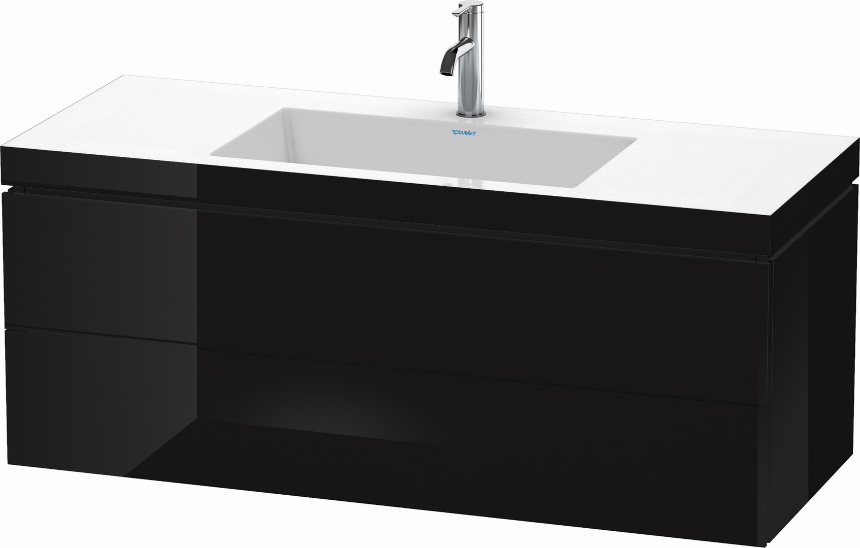 Duravit Waschtisch-Unterschrank c-bonded L-Cube 120 x 48 cm, 1 Hahnloch, schwarz hochglanz, 2 Schubkästen, wandhängend