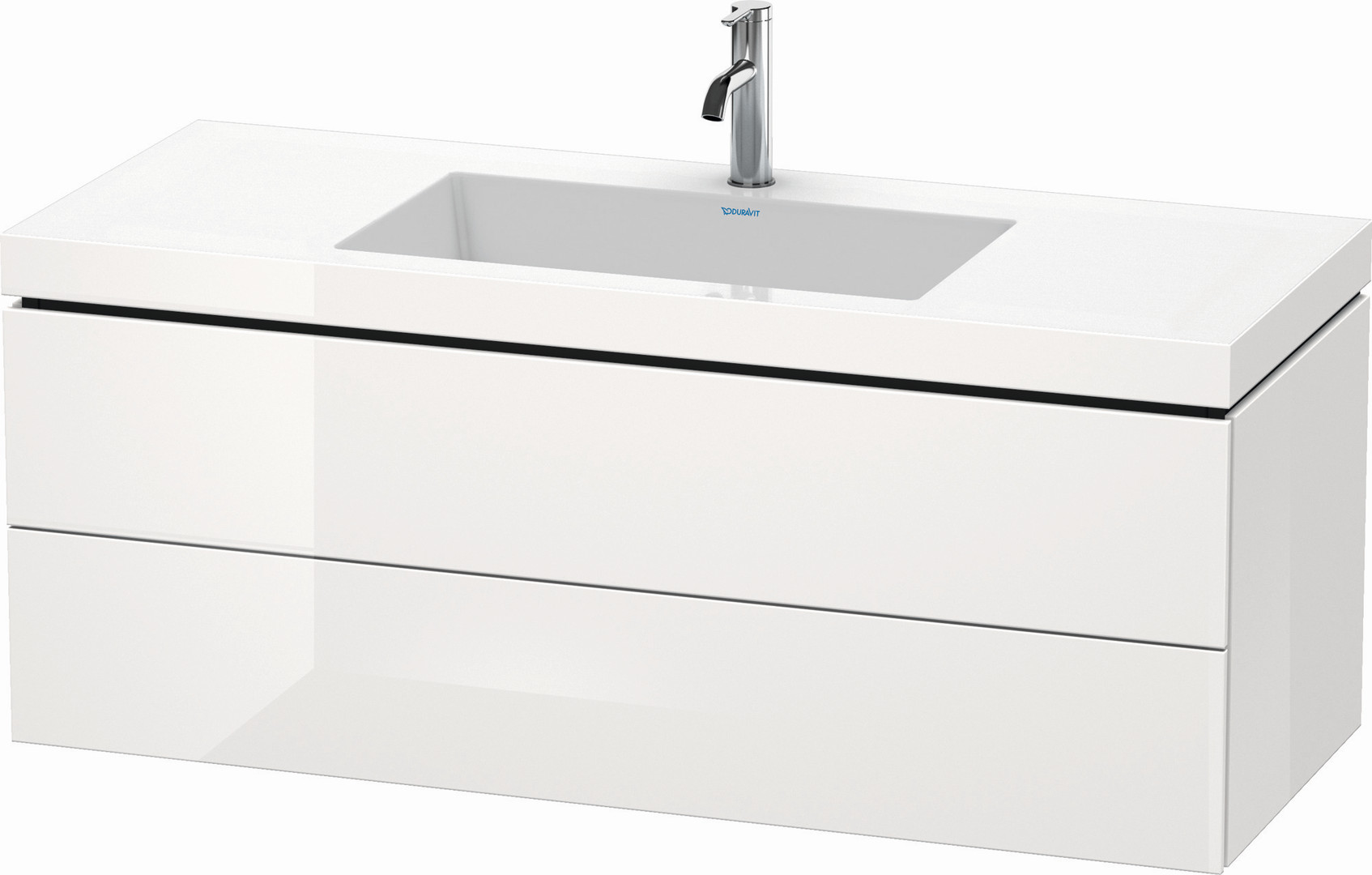 Duravit Waschtisch-Unterschrank c-bonded L-Cube 120 x 48 cm, 1 Hahnloch, weiß hochglanz, 2 Schubkästen, wandhängend