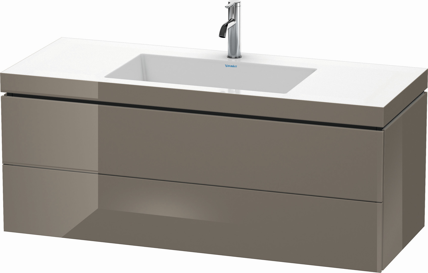 Duravit Waschtisch-Unterschrank c-bonded L-Cube 120 x 48 cm, 1 Hahnloch, flannel grey hochglanz, 2 Schubkästen, wandhängend