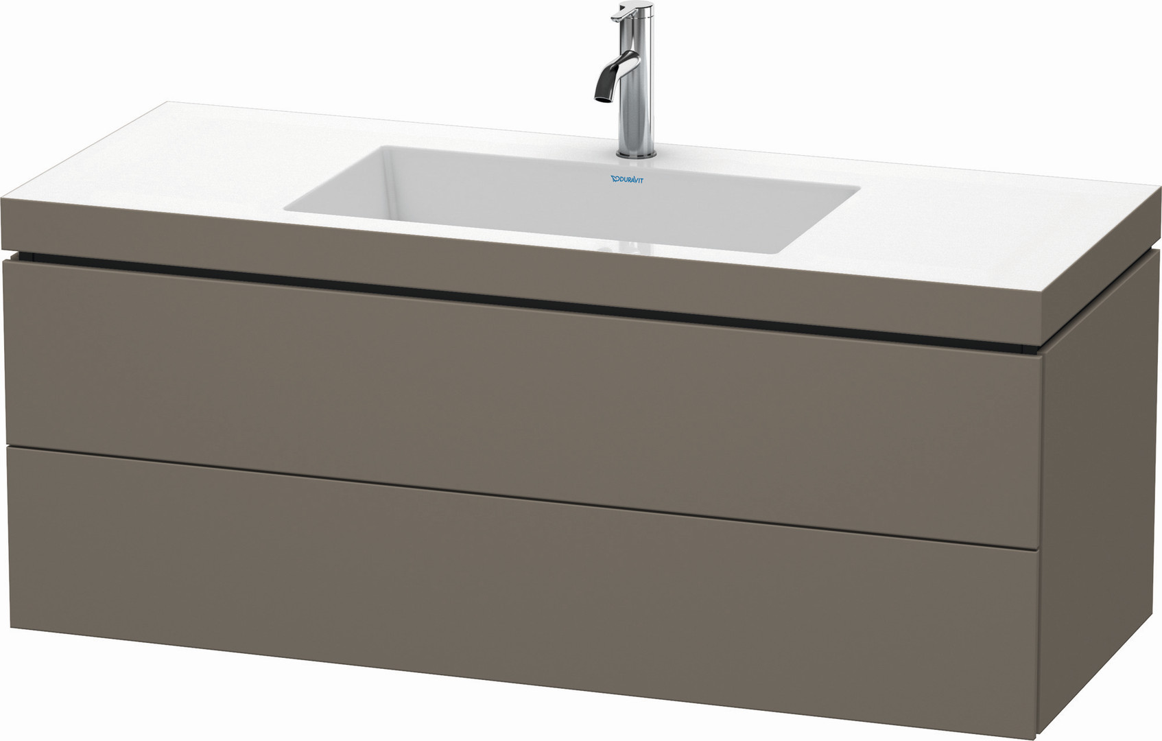 Duravit Waschtisch-Unterschrank c-bonded L-Cube 120 x 48 cm, 1 Hahnloch, flannel grey seidenmatt, 2 Schubkästen, wandhängend
